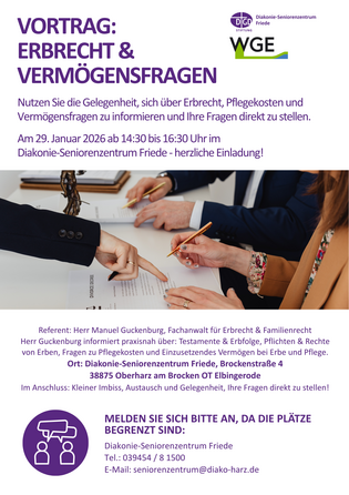 Nutzen Sie die Gelegenheit, sich umfassend über Erbrecht, Pflegekosten und Vermögensfragen zu informieren und Ihre Fragen direkt an…