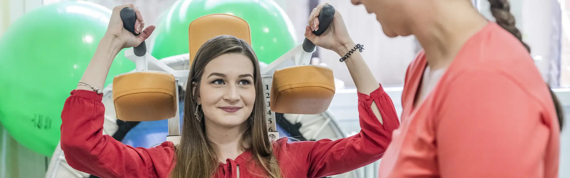 Die Krankengymnastik am Gerät zielt darauf ab, die schwache oder im Missverhältnis stehende Muskulatur durch ein individuelles, medizinisches Aufbautraining auszugleichen. Sie ist eine ideale Ergänzung zur Einzeltherapie. Es stehen Universalzugapparate, Funktionsgeräte und verschiedene Kleingeräte zur Verfügung, um die Muskulatur und Gelenkfunktion nach Traumata oder Operationen zu trainieren. Das Training findet unter ständiger Anleitung eines Therapeuten statt. Die Leistung kann sowohl als Kassenleistung als auch Privatleistung in Anspruch genommen werden.